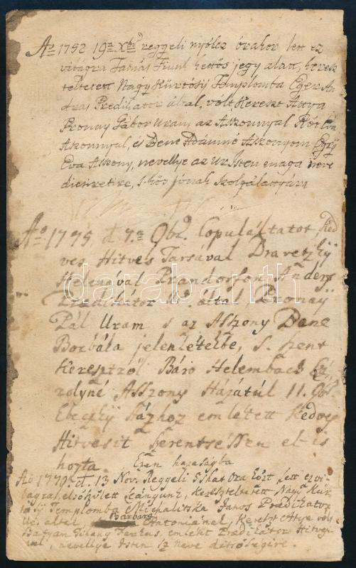 1775 Prandorf Felvidék, Baka magyarul, Dolné Devicany, SK Prónay Pál és felesége Dravetzky Heléna kopulálásáról író feljegyzés, más családi események mellett egy lapon.