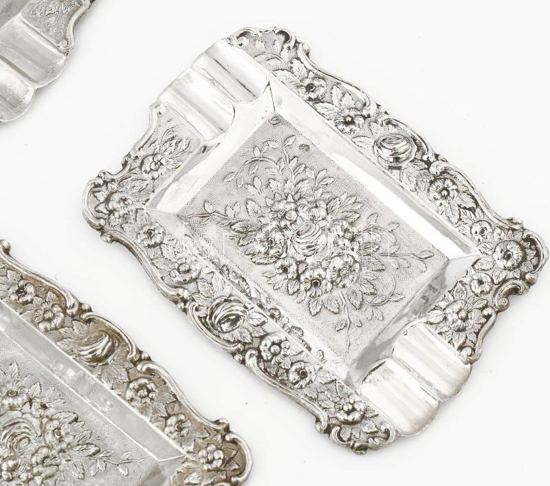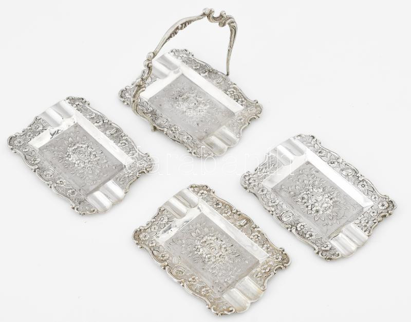 Leírás: 4 részes ezüst (Ag) hamuzó szett, jelzés nélkül, 88g