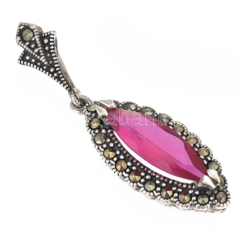 Leírás: Ezüst(Ag) medál szintetikus rubinnal, jelzett, h: 4 cm, bruttó: 3,93 g