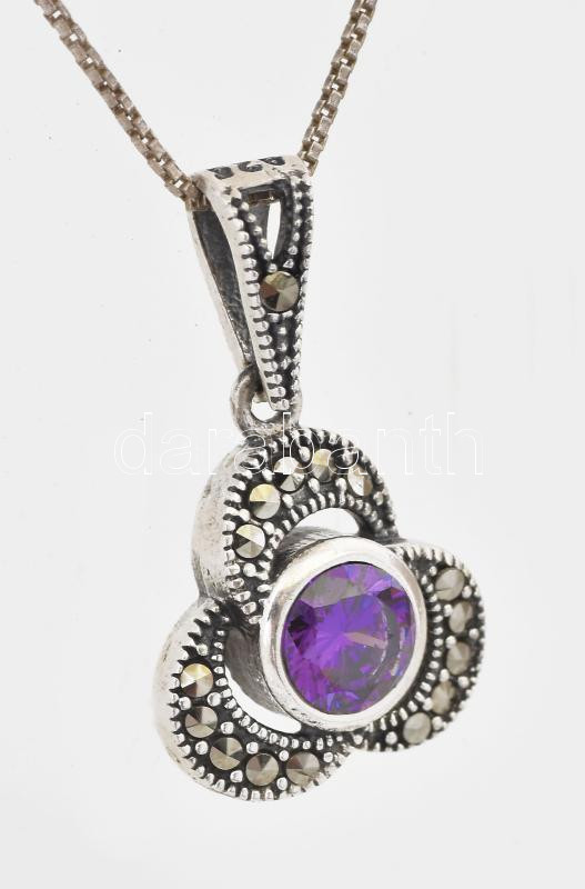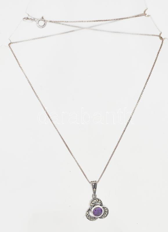 Leírás: Ezüst(Ag) venezianer nyaklánc lila köves medállal, jelzett, h: 42 cm, bruttó: 5,3 g