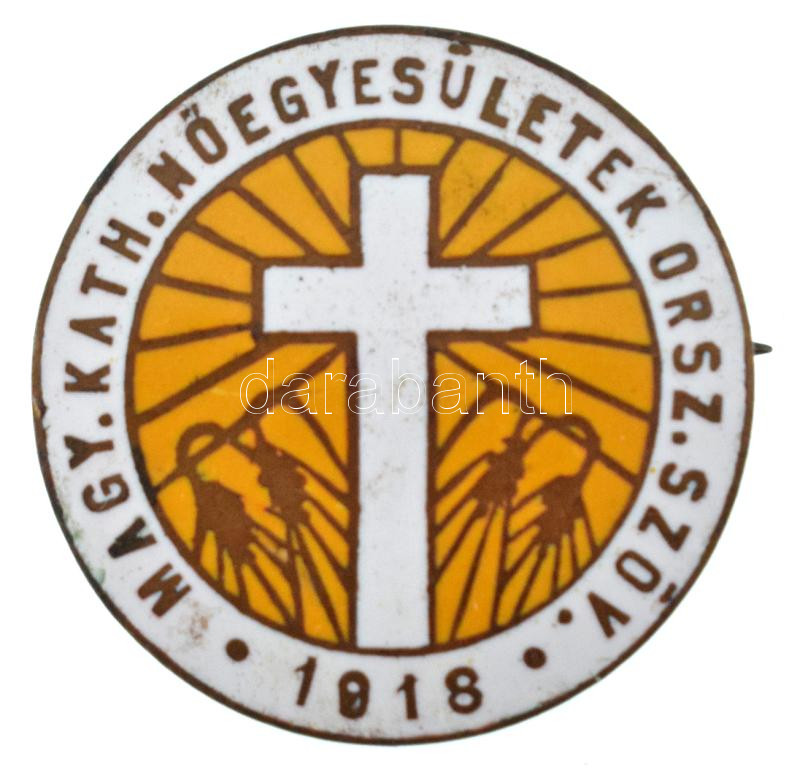 1918. "Magy. Kath. Nőegyesületek Orsz. Szöv." zománcozott br... https://www.darabanth.com/hu/477-Gyorsarveres/477.0/Numizmatika/Falerisztika-Kituntetesek-jelvenyek~500022/1918-Magy-Kath-Noegyesuletek-Orsz-Szov-zomancozott-bronz-jelveny-hatoldalon-BERAN-N~II3206471