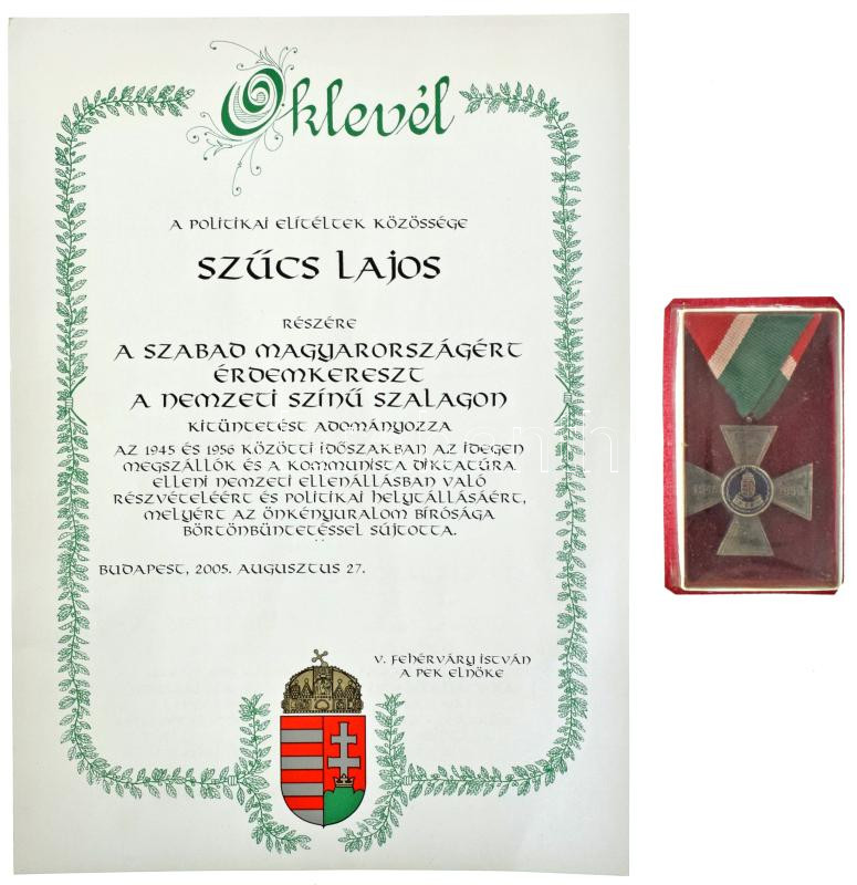 2005. "Szabad Magyarországért Érdemkereszt a Nemzeti Színű Szalagon" fém kitüntetés a Politikai Elítéltek Közösségétől a hozzá tartozó oklevéllel T:UNC