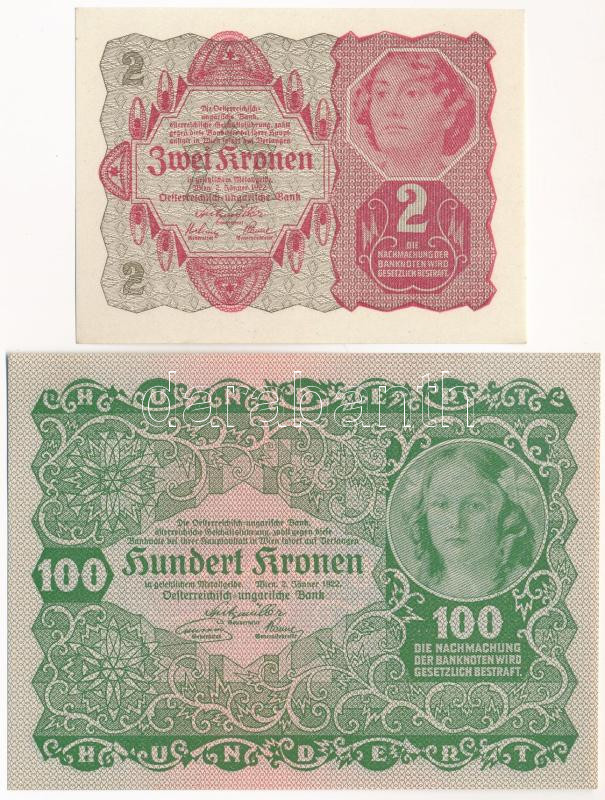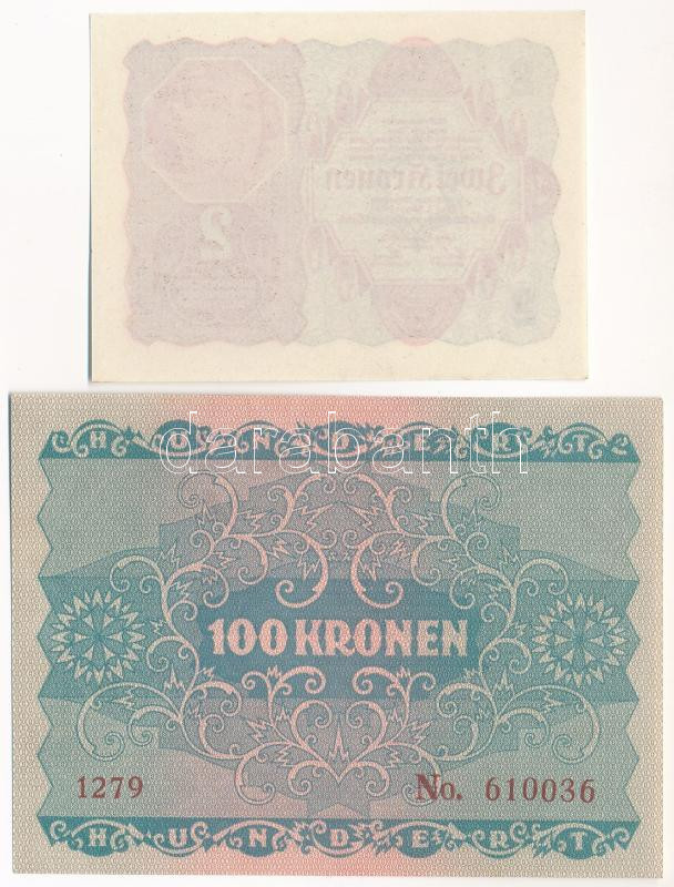 Austria 1922. 2 Kronen + 100 Kronen "1279 610036" T:UNC