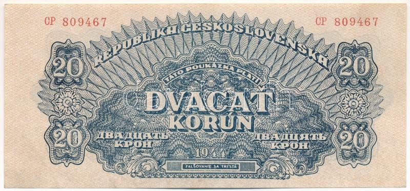 Leírás: Csehszlovákia 1944. 20K T:XF Czechoslovakia 1944. 20 Korun C:XF Krause P#47