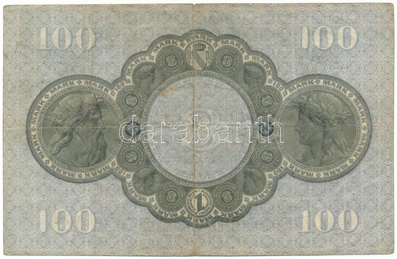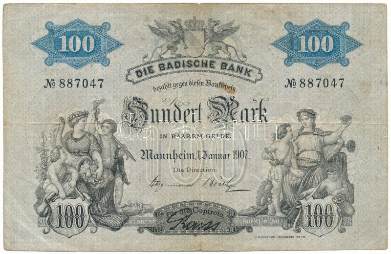 German Empire / Baden 1907. 10... https://www.darabanth.com/hu/477-Gyorsarveres/477.0/Numizmatika/Kulfoldi-bankjegyek~500016/Nemet-Birodalom-Baden-1907-100M-TF-German-Empire-Baden-1907-100-Mark-CF-Krause-P23S906~II3248057