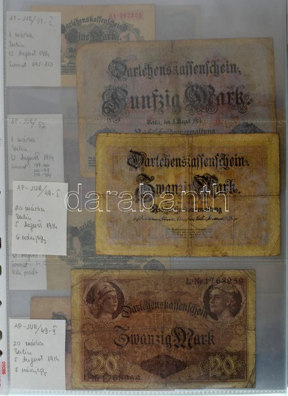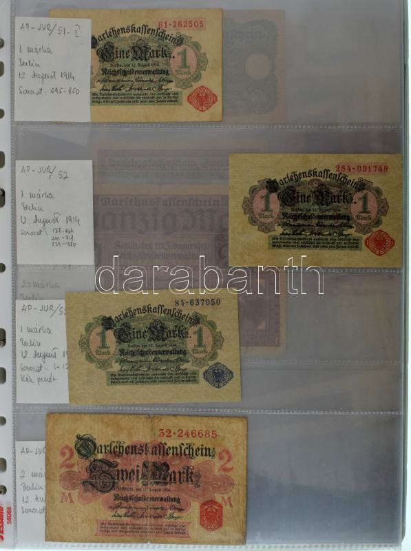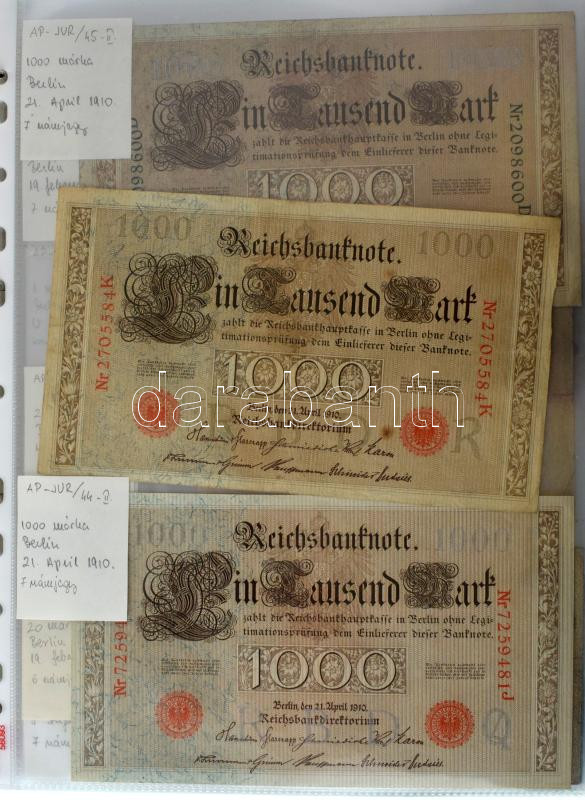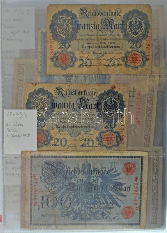 Német Birodalom / Weimari Köztársaság 1908-1923. 153db-os német bankjegytétel + 18db szelvény államadóssági kötvényekről, berakóban T:F-G közte szép papír