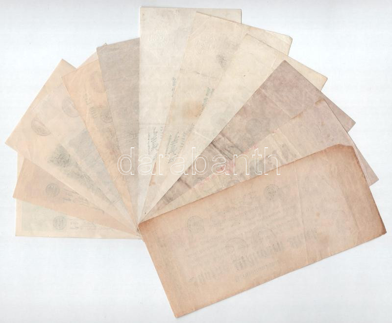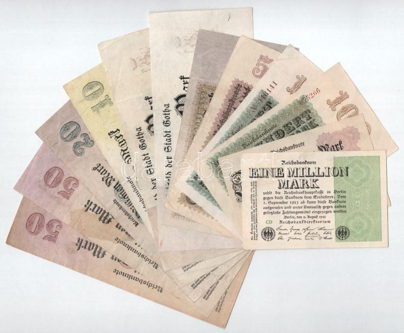 Leírás: Németország / Weimari Köztársaság 1922. 500M (2x) + 1923. 1.000.000M + 2.000.000M + 10.000.000M + 20.000.000M + 50.000.000M (2x) + 100.000.000M (2x) + 500.000.000M + 5.000.000.000M T:F, közte VF