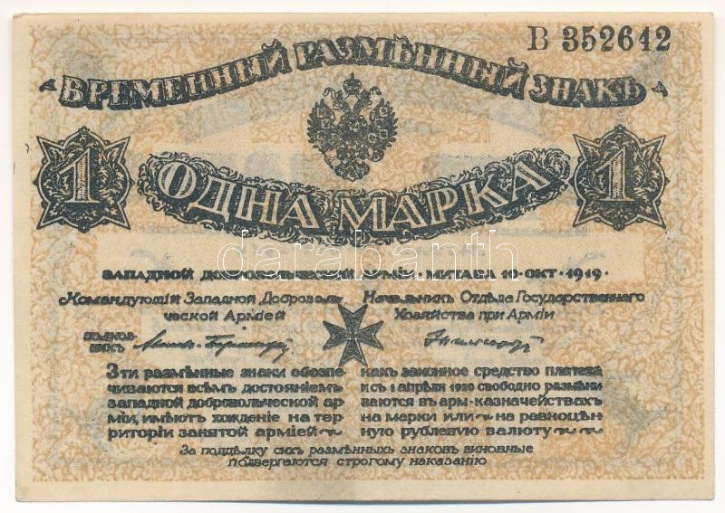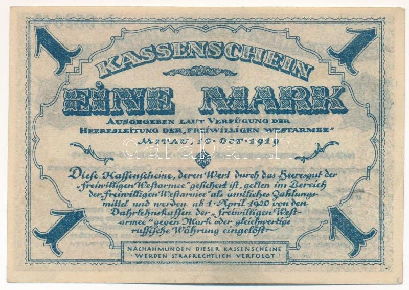 Orosz Polgárháború / Nyugat-oroszországi Önkéntes Hadsereg / Mitau 1919. 1M T:AU Russian Civil War / West Russian Volunteer Army / Mitau 1919. 1 Mark C:AU