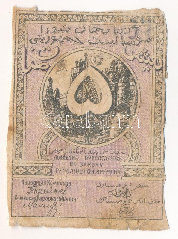 Orosz Polgárháború / Transzkaukázia / Azerbajdzsáni Szocialista Szovjet Köztársaság DN (1920) 5R T:G Russian Civil War / Transcaucasia / Soviet Socialist Republic of Azerbaijan ND (1920) 5 Rubles C:G Krause P# S709