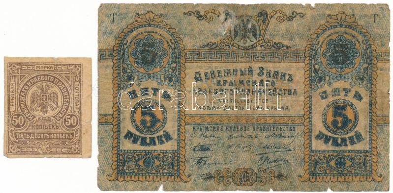 Leírás: Orosz Polgárháború / Ukrajna és Krím / Krími területi kormányzat DN (1918) 50k bélyegpénz + 1918. 5R T:VG,G Russian Civil War / Ukraine and Crimea / Crimea Territorial Government ND (1918) 50 Kopeks stamp money + 1918. 5 Rubles C:VG,G Krause P#S369, S370