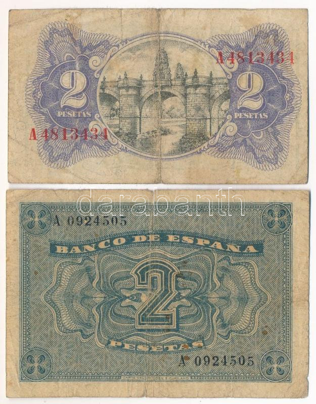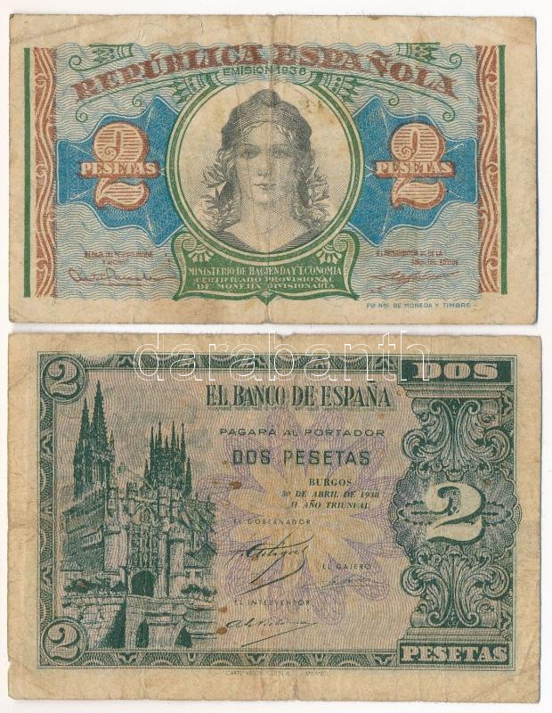 Leírás: Spanyolország 1938. 2P (2xklf) T:VG Spain 1938. 2 Pesetas (2xdiff) C:VG Krause P#95, P#109