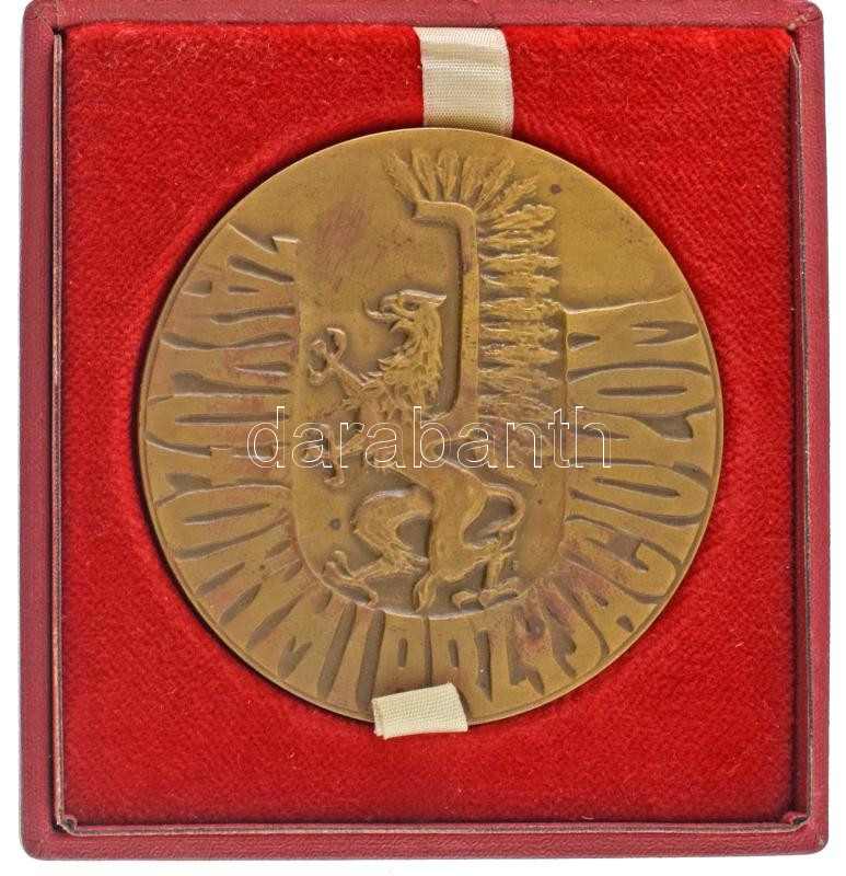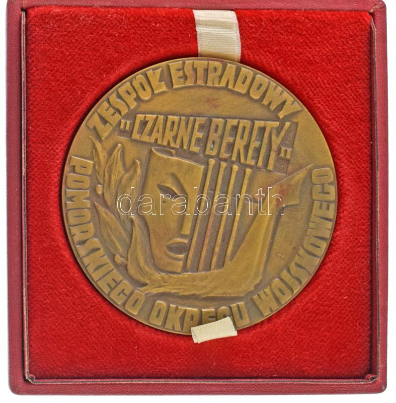 Lengyelország DN "Zespół Estradowy Pomorskiego Okregu Wojskowego - Czarne Berety/ Zasłużonymi Przyjaciołom (A Pomerániai Katonai Körzet színpadi zenekara - A feketesapkás / Tisztelt Barátaink)" bronz emlékérem eredeti tokban (69mm) T:AU patina