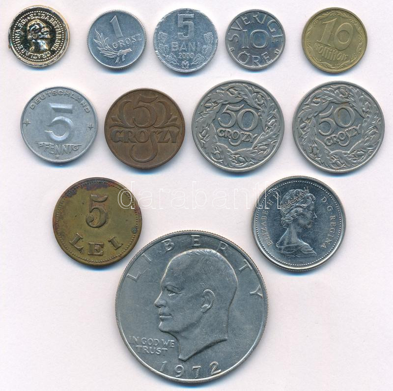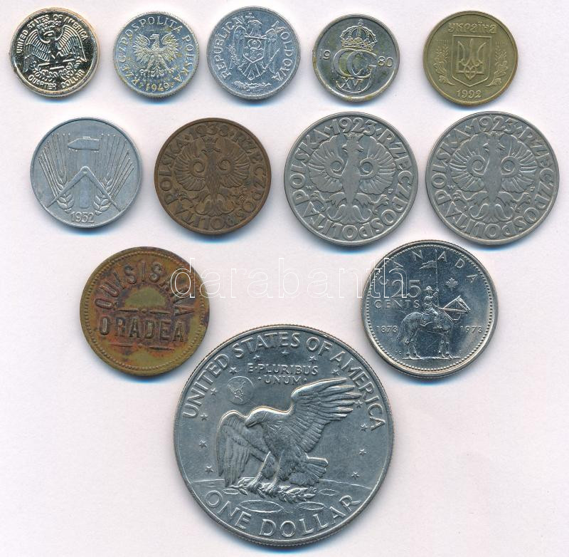 12db-os vegyes fémpénz tétel klf országokból, közte Amerikai Egyesült Államok, Lengyelország, Románia T:vegyes