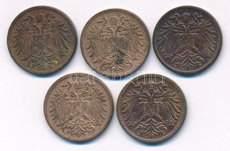 Leírás: Ausztria 1906-1913. 2h bronz (5xklf) T:AU,XF Austria 1906-1913. 2 Heller bronze (5xdiff) C:AU,XF
