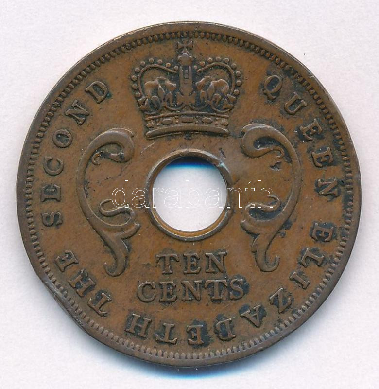British East Africa 1956. 10 Cents Bronze "Elizabeth II" C:XF patina, edge error