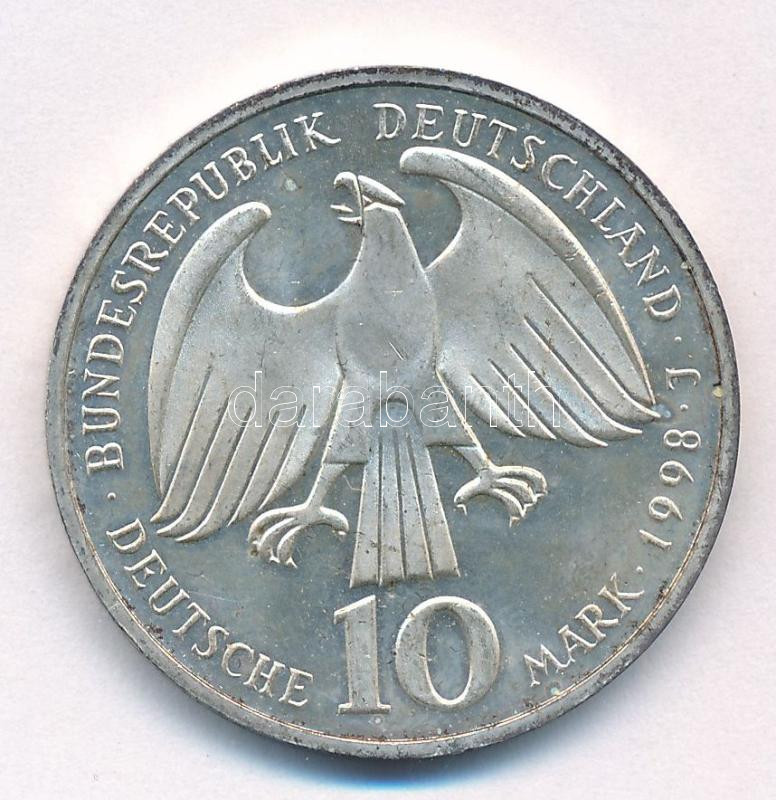 Germany 1998J 10 Mark Ag "300th Anniversary end of 30 Years War - Peace of Westphalia" C:AU patina