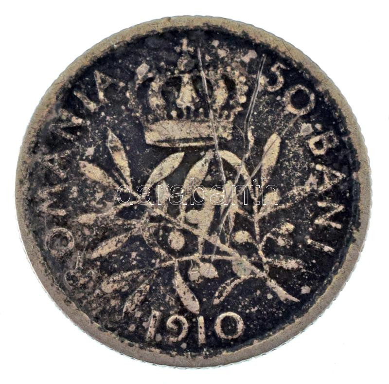 Romania 1910. ... https://www.darabanth.com/hu/477-Gyorsarveres/477.0/Numizmatika/Kulfoldi-fem-es-ezustpenzek~500017/Romania-1910-50b-Ag-I-Karoly-TVF-F-karc-Romania-1910-50-Bani-Ag-Charles-I-CVF-F-scratch-~II3249633