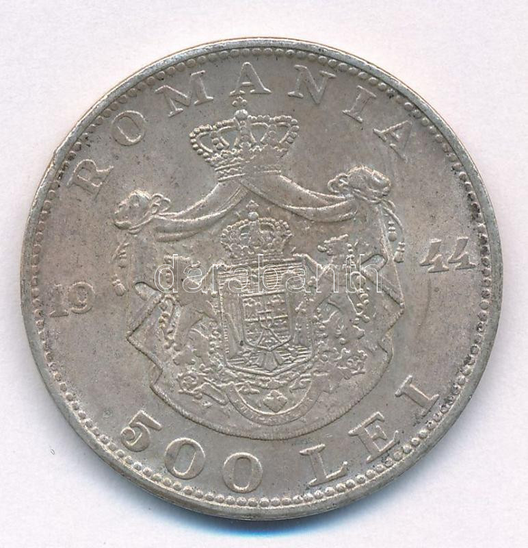 Romania 19... https://www.darabanth.com/hu/477-Gyorsarveres/477.0/Numizmatika/Kulfoldi-fem-es-ezustpenzek~500017/Romania-1944-500L-Ag-I-Mihaly-TXF-VF-patina-Romania-1944-500-Lei-Ag-Mihai-I-CXF-VF-patin~II3248921