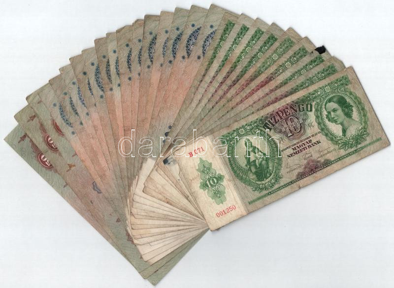 1932-1941. 10P (9x) + 20P (14x) + 50P (3x) T:F-VG https://www.darabanth.com/hu/477-Gyorsarveres/477.0/Numizmatika/Magyar-bankjegyek~500009/1932-1941-10P-9x-plus-20P-14x-plus-50P-3x-TF-VG~II3250862