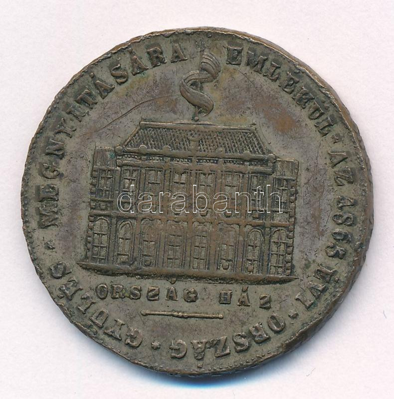 1867. "Érem I. Ferenc József budai koronázására" ezüstözött bronz emlékérem "A BUDA PESTI KORONÁZÁS EMLÉKÜL 1867 JUNIUS 8 ÁN / EMLÉKÜL AZ 1865. ÉVI ORSZÁG GYÜLÉS MEGNYITÁSÁRA PESTEN - ORSZÁG HÁZ", "EMLÉK PÉNZ - DENK MÜNZE" peremirattal (38mm) T:VF ph.