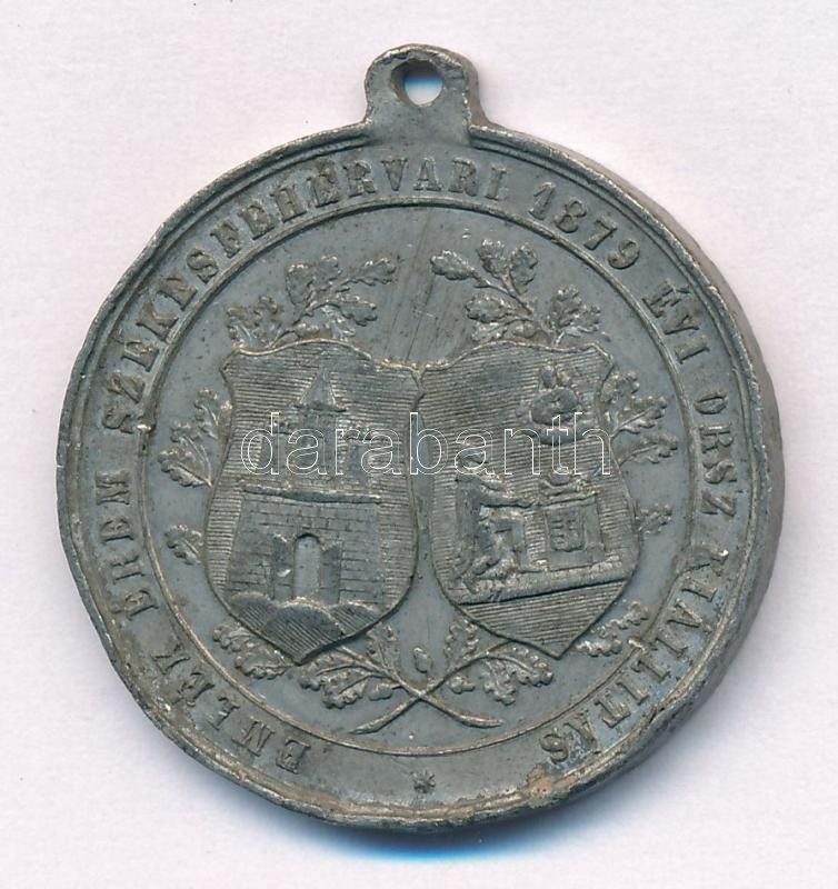 1879. "Emlék Érem Székesfehérvári 1879 évi orsz. kiállítás / Gróf Zichy Jenő a kiállítás elnöke" Sn emlékérem füllel. Szign.:K.S. (33mm) T:XF,VF több ph.