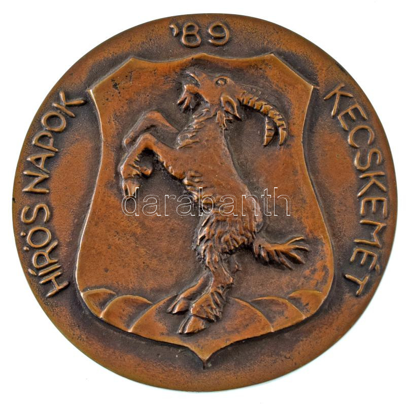 Leírás: 1989. "Kecskemét Hírös Napok" nagyméretű bronz emlékérem (120mm) T:XF
