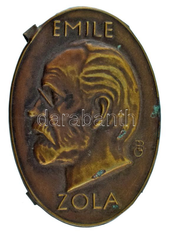 Leírás: Beck Ö. Fülöp (1873-1945) DN "Emile Zola" bronz lemezplakett (57x40mm) T:XF patina, a hátsó négy pántból egy letört