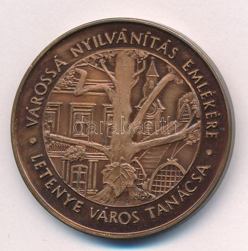 Bognár György (1944-) 1989. "Letenye / Várossá nyilvánítás emléké... https://www.darabanth.com/hu/477-Gyorsarveres/477.0/Numizmatika/Magyar-emlekveretek-plakettek~500012/Bognar-Gyorgy-1944-1989-Letenye-Varossa-nyilvanitas-emlekere-Letenye-varos-tanac~II3203701