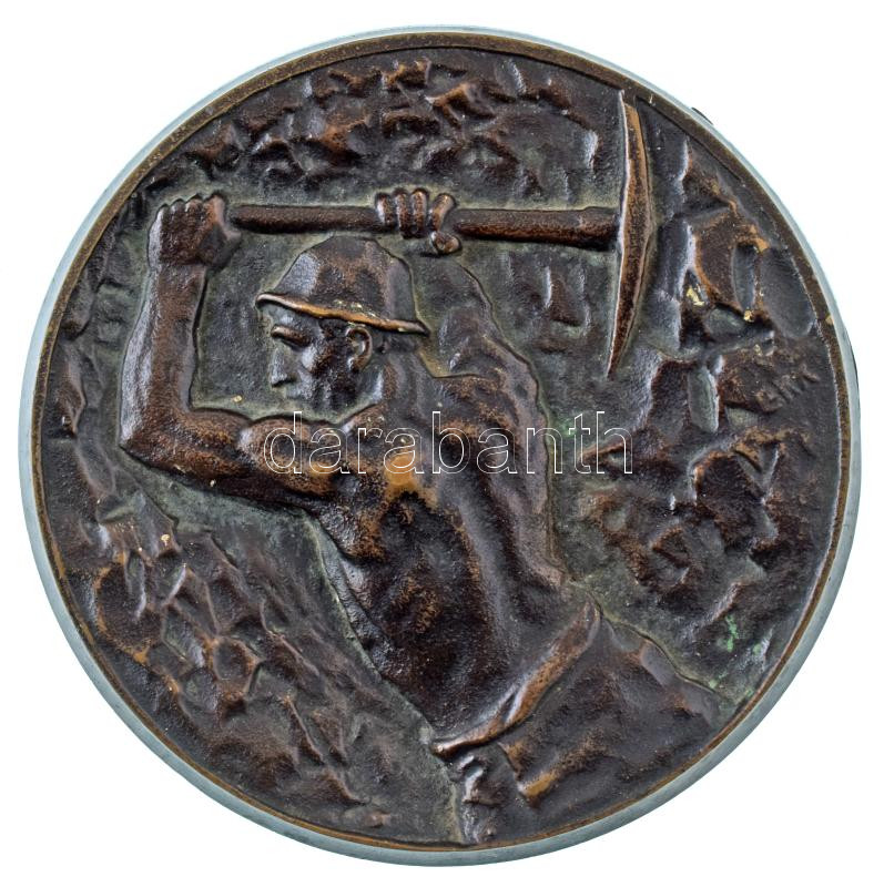 Leírás: Bóna Kovács Károly (1897-1970) DN "Bányászat" nagyméretű öntött bronz emlékplakett (172mm) T:XF