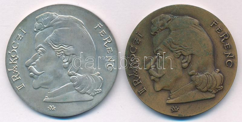 Leírás: Madarassy Walter (1909-1994) 1976. "II. Rákóczi Ferenc / 1676-1976" jelzett Ag és bronz emlékérem pár (25,24g/0.800/42,5mm) T:BU patina