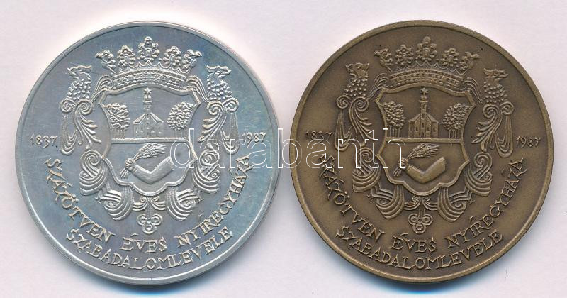 Nagy Lajos (1949-) 1987. "MÉE Szabolcs-Szatmár megyei szervezet / Százötven éves Nyíregyháza szabadalomlevele 1837-1987 - V. Ferdinánd" Ag és bronz emlékérem pár (36,21g/0825/42,5mm) T:UNC,AU Adamo NH9