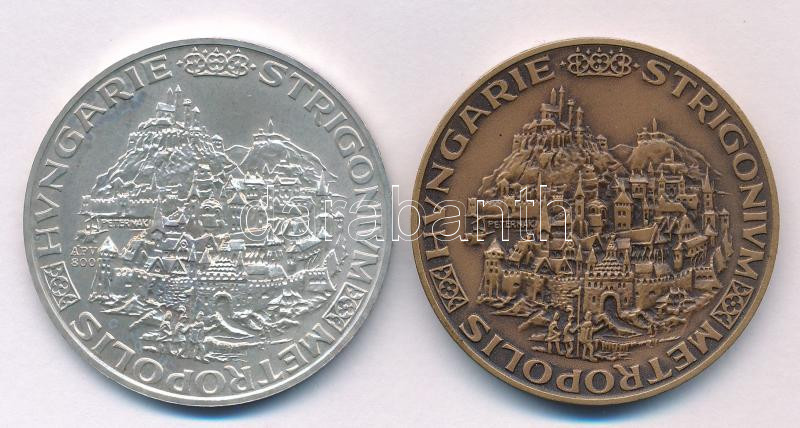 Peternák Gusztáv (1928-2003) 1988. "MÉE Budapest / Hungarie Strigonium Metropolis (Esztergom)" jelzett Ag és bronz emlékérem pár (25,21g/0.800/42,5mm) T:BU,UNC
