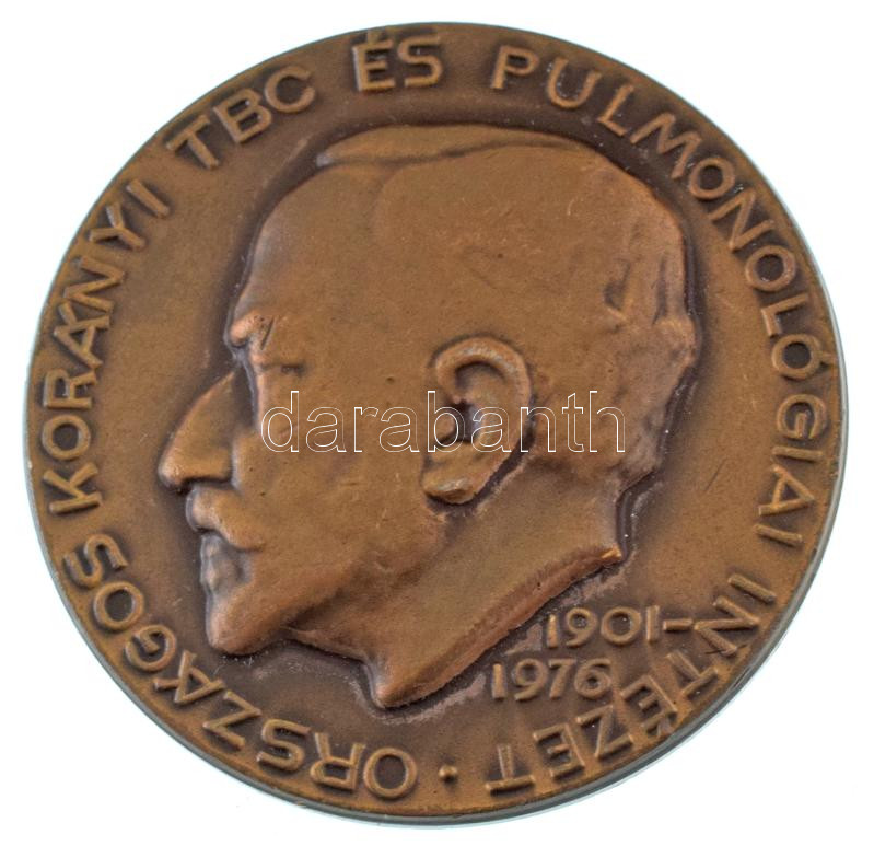 Leírás: Reményi József (1887-1977) 1976. "Országos Korányi TBC és Pulmonológiai Intézet - 1901-1976" egyoldalas, öntött bronz emlékérem (40mm) T:AU,XF kis ph.
