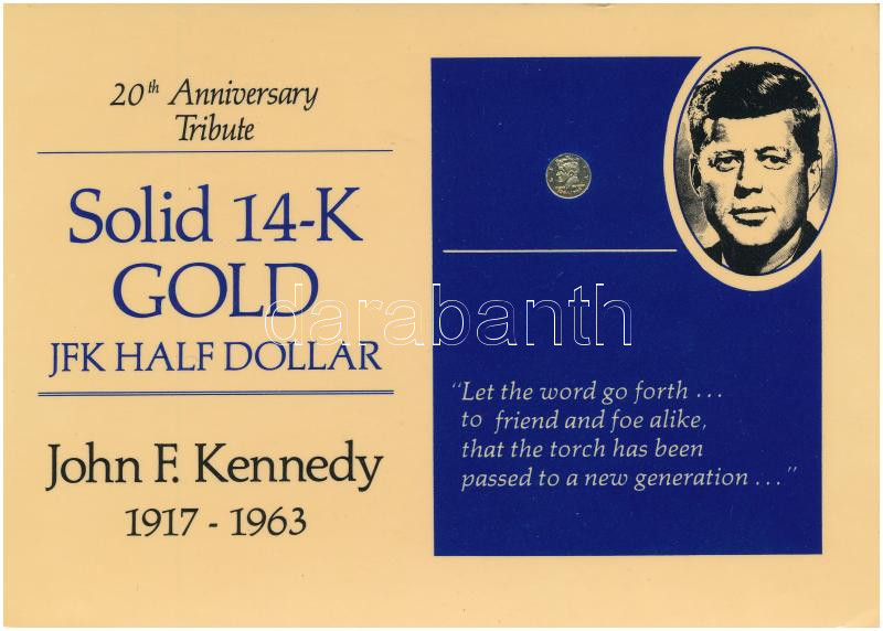 Amerikai Egyesült Államok 1984. 1/2$ Au "Kennedy" mini arany díszlapon (10mm/0.585/0,1g) T:UNC