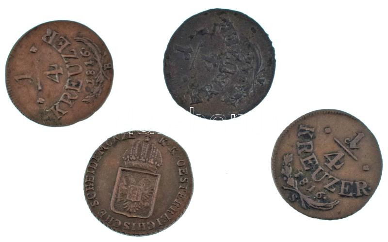 Leírás: 1816. 1/4kr Cu (4xklf) "A + B +O + S" verdejel T:XF-VF patina