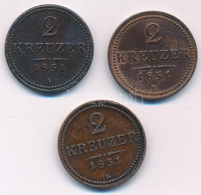 Leírás: 1851A - 1851B - 1851G 2kr Cu (3xklf) T:AU,VF ph., patina