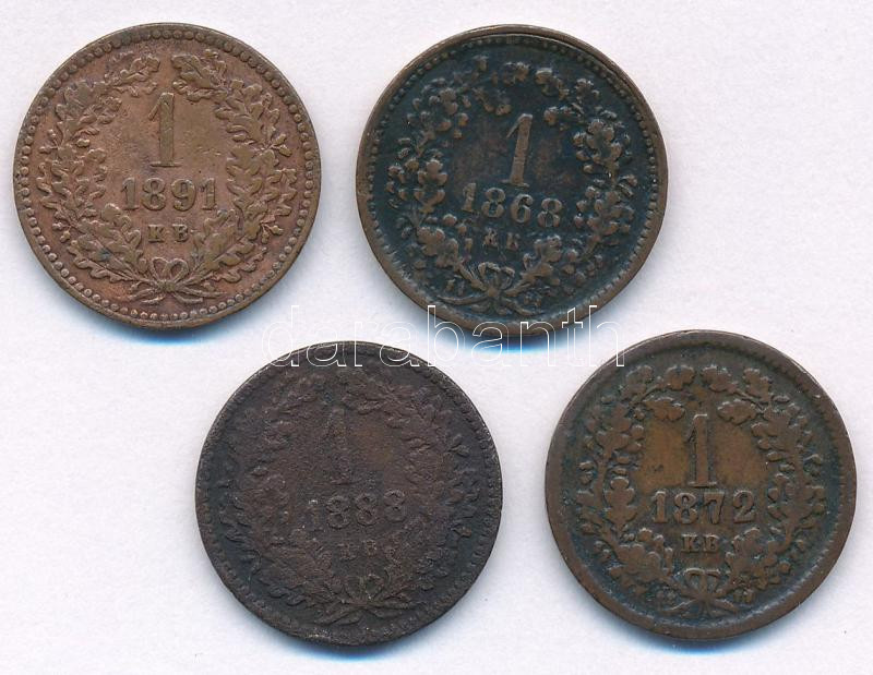 1868KB 1kr Cu + 1872KB 1kr Cu + 1888KB 1kr Cu + 1891KB 1kr Cu T:XF,VF