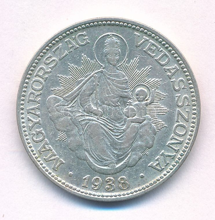 1938. 2P Ag "Madonna" T:VF Adamo P7 https://www.darabanth.com/hu/477-Gyorsarveres/477.0/Numizmatika/Magyar-es-magyar-verdejelu-fem-es-ezustpenzek~500010/1938-2P-Ag-Madonna-TVF-Adamo-P7~II3195739