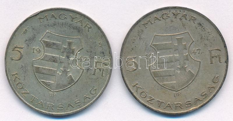 Leírás: 1947. 5Ft Ag "Kossuth" (2x) T:VF,F patina