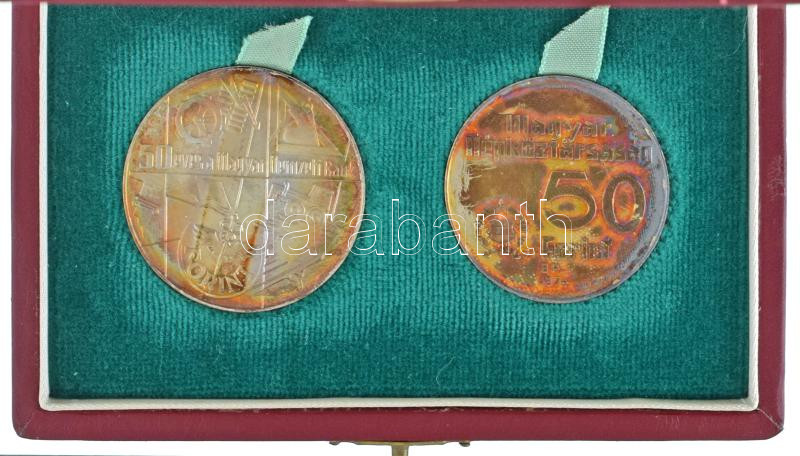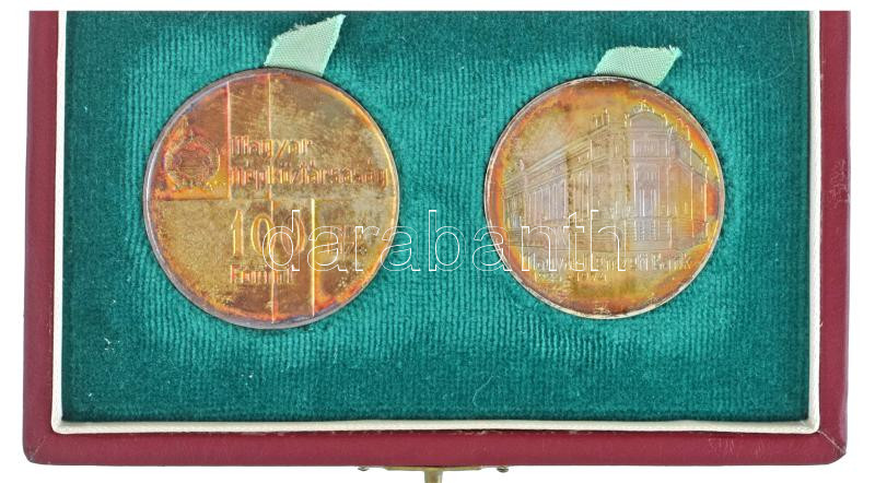 Leírás: 1974. 50Ft Ag + 100Ft Ag "50 éves a Magyar Nemzeti Bank" érmepár dísztokban T:UNC patina