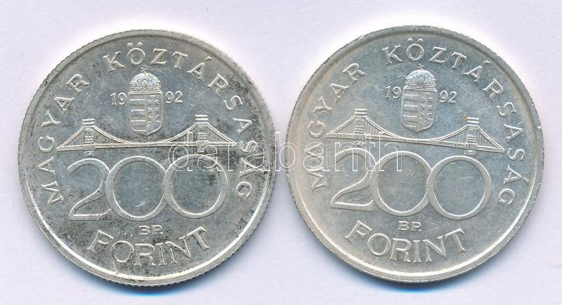 Leírás: 1992. 200Ft Ag "MNB" (2x) T:AU,XF patina