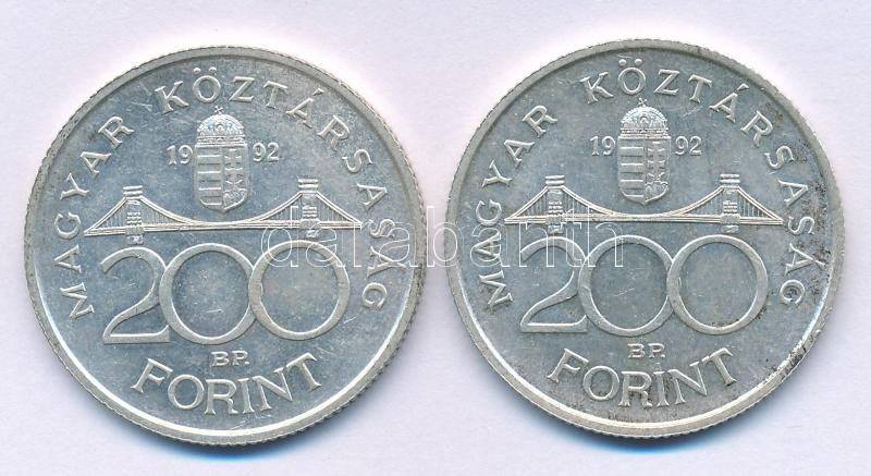 Leírás: 1992. 200Ft Ag "MNB" (2x) T:AU,XF patina