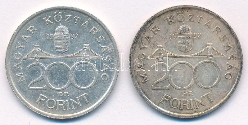 Leírás: 1992. 200Ft "MNB" Ag (2x) T:AU,XF patina Adamo F13