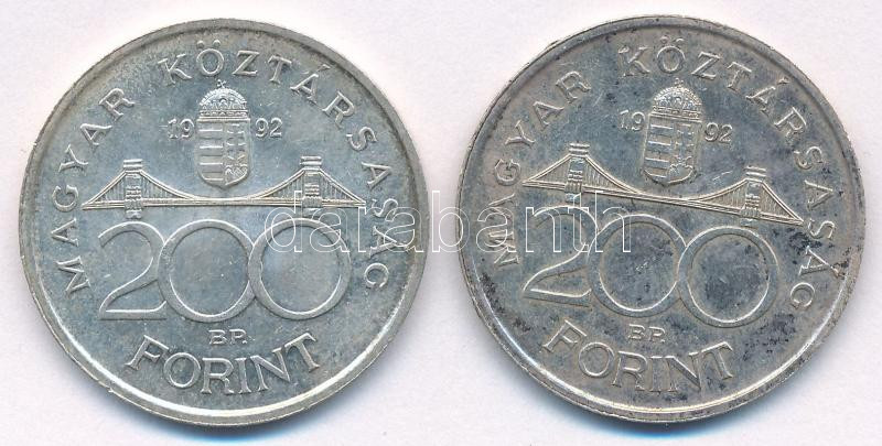 Leírás: 1992. 200Ft "MNB" Ag (2x) T:AU patina Adamo F13