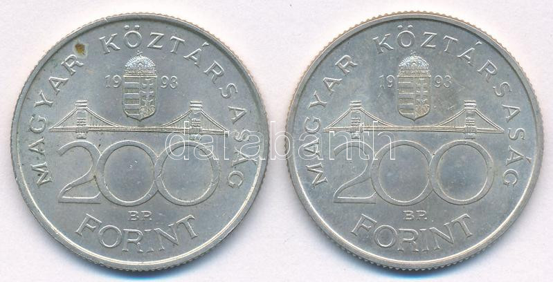 Leírás: 1993. 200Ft Ag "MNB" (2x) T:AU Adamo F13