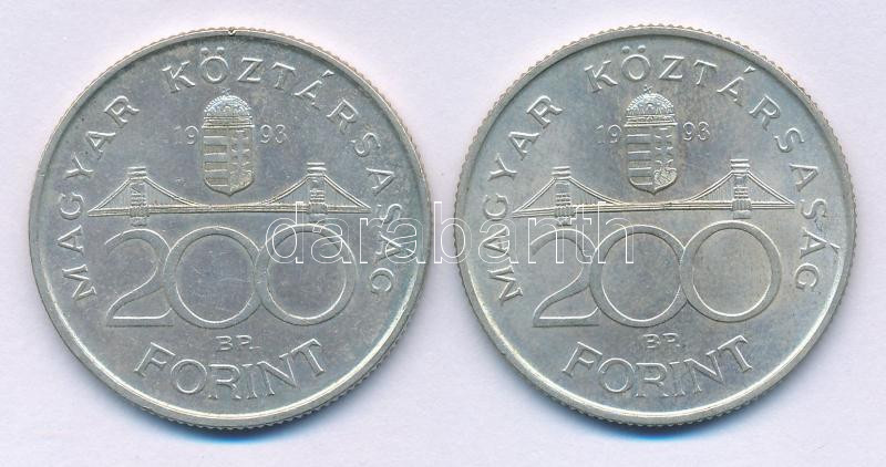 Leírás: 1993. 200Ft Ag "MNB" (2x) T:AU,XF patina
