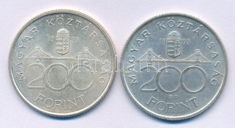 Leírás: 1993. 200Ft Ag "MNB" (2x) T:AU,XF patina