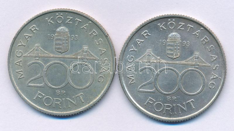 Leírás: 1993. 200Ft Ag "MNB" (2x) T:AU,XF patina