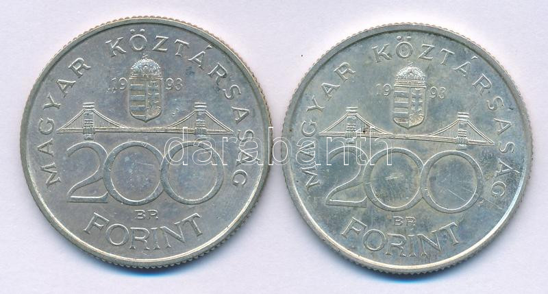 Leírás: 1993. 200Ft Ag "MNB" (2x) T:AU,XF patina