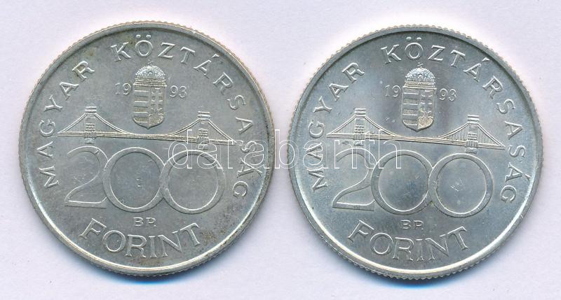 Leírás: 1993. 200Ft Ag "MNB" (2x) T:AU,XF patina